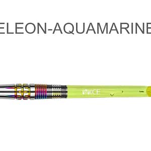 Chameleon Aquamarine Benannt nach dem farbenfrohen Chamäleon besticht auch die gleichnamige One80 Serie mit einem auffälligen stylischen Look. Alle Modelle der Chameleon Serie wurden mit einem mehrfarbigen Rainbow Coating beschichtet und aus 90%igen Tungsten gefertigt. Neben dem Aussehen ist auch jedes der verschiedenen Gripmuster außergewöhnlich gestaltet. STEELTIP 7973 7974 WEIGHT(G) 22 24 DIAMETER MAX(MM) 7.5…