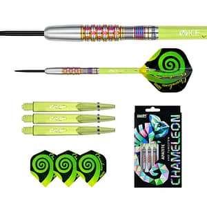 Chameleon Citrine Die beliebte One80 Chameleon Serie wird mit dem Citrine erweitert. Einzigartige DNA-Beschichtung und eine Vielzahl von Dartformen und Grip-Typen, das zeichnet die Chameleons aus. So ist es auch beim Citrine. Dieser Dart bringt dem Spieler eine ruhige Flugbahn durch seine leicht kopflastige Form und mit Doppelringgrip. Der Chameleon Citrine Barrel ist von Grip…