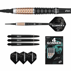 One80 GUNNER 4 Steeltip Black und Rosegold Bei one80 Dart ist die Verarbeitung des Barrels auf höchstem Niveau gelungen. Die Gewinde wurden sehr präzise gebohrt und zu 100% exakt gedreht und gefräst. Durch die präzise Verarbeitung und das feine Gewinde sitzen die Spitzen und Shafts des Darts gerade und ausgesprochen fest. Der Grip des One80 GUNNER 4…