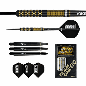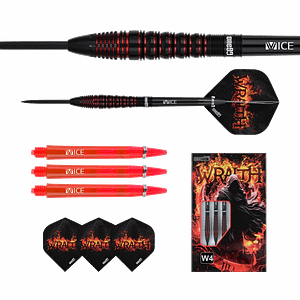 ONE80 Wraith W2 Steeltip Bei dem ONE80 Wraith W2 Steeltip Dart ist die Verarbeitung des Barrels auf höchstem Niveau gelungen. Die Gewinde wurden sehr präzise gebohrt und zu 100% exakt gedreht und gefräst. Durch die präzise Verarbeitung und das feine Gewinde sitzen die Spitzen und Shafts des Darts gerade und ausgesprochen fest. Die schwarzen Oberfläche mit roten Akzenten der neuen One80 Wraith Dart-Barrels sind sehr angenehm zu greifen. Produziert…