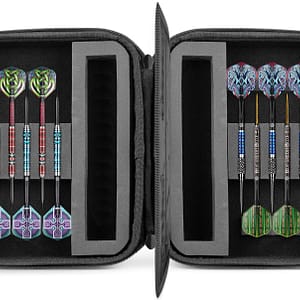 Tactical Darts Case-Two Set Dart Wallet Feste Schaumstoffschlitze halten und schützen 6 vollständig montierte Darts, ohne die Flights zu zerdrücken. In den individuell gestalteten Reißverschlusstaschen finden Darts, Zubehör, Telefon, Schlüssel und Geldbörse Platz. Reichlich Platz für Ersatzschäfte, -wellen, -flüge und -spitzen. Recycelbare Kartonverpackung. Das robuste, aber großzügige Tactical Darts Case-Two Set Dart Wallet (20 x…
