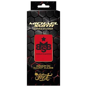 Shot Drop In Dart Case Michael Smith Dieses Shot Drop In Dart Case Michael Smith bietet Platz für drei komplett montierte Steeldarts oder Softdarts in seinem integrierten Dart-Caddy – so sind Sie immer bereit für ein Match. Trotz des schlanken Designs ist viel drin: Taschen für Ersatzteile und ein praktisches Fach für Ihre Spielerkarte. Ein…