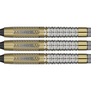 Entdecken Sie den Inbegriff von Luxus und Präzision mit den Raymond van Barneveld Chrono Darts . Diese außergewöhnlichen Darts sind von der Raffinesse und Eleganz hochwertiger Uhren inspiriert und damit eine hervorragende Wahl für Spieler, die die schönen Dinge des Lebens zu schätzen wissen. Diese Darts wurden in Zusammenarbeit mit dem fünffachen Weltmeister Raymond van Barneveld, auch bekannt als „Barney“, entwickelt und bestechen durch ihr minimalistisches und dennoch markantes Design. Der Barrel besteht aus 95 % Wolfram und ist mit einer luxuriösen goldenen PVD-Titannitrid-Beschichtung versehen.