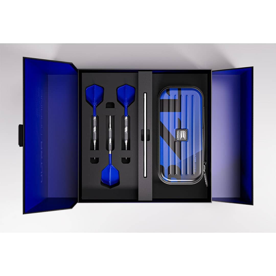In der Präsentationsbox enthalten sind zwei zusätzliche Sätze Swiss Storm Nano Points in Silber und Schwarz, ein exklusives 975 Ultra Marine Takoma Wallet und Pin Badge, ein Premium Swiss Key und ein 975 Ultra Marine Booklet, das die Geschichte hinter den Darts beschreibt.