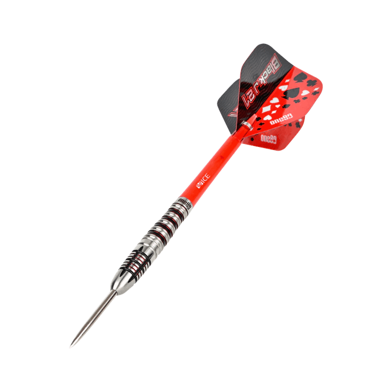 One80 hat die Black J21 Serie mit 4 unterschiedlichen Barrels auf den Markt gebracht. Jedes Barrel verfügt über eine eigene Form, sodass du die Wahl aus unterschiedlichem Grip und Design hast. Farblich wurde der Dart mit einem silbernen Barrel versehen der als optische Highlights schwarze und rote Ringe aufweist. Die Barrels haben 3 unterschiedliche Grip Zonen, was dir sehr guten Halt bietet.