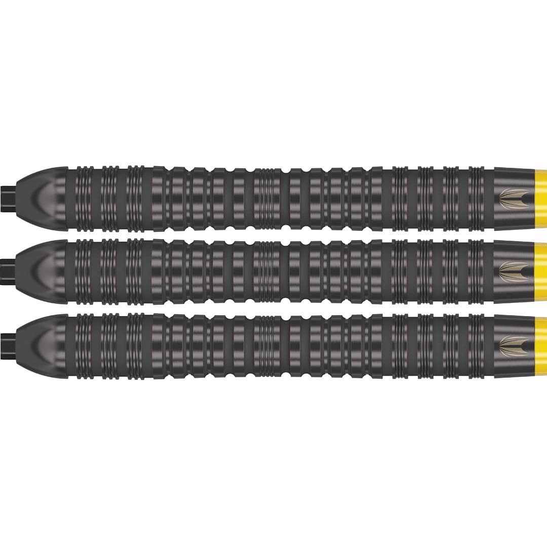 Mit einer atemberaubenden schwarzen Titanbeschichtung für eine zusätzliche Schicht der Haltbarkeit und verbesserte Ästhetik, die sandgestrahlten Radialrillen Griff ermöglicht eine bessere Kontrolle, so dass Sie das Vertrauen zu werfen mit Zielgenauigkeit. Die auf Präzision ausgelegten 90%igen Tungsten Barrels werden durch die beliebten Pro Grip Schäfte und Bolide Void Edition No.6 Flights ergänzt und mit den patentierten schwarzen 26mm Swiss Points von Target für einen komplett austauschbaren Dart abgeschlossen.
