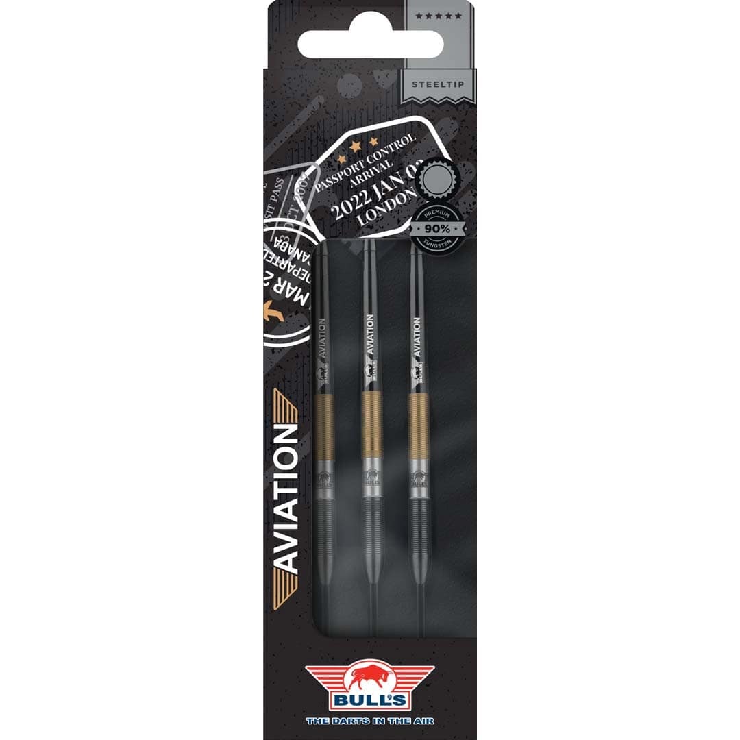 Wir präsentieren die außergewöhnlichen Bull’s Aviation 90% Dartpfeile, ein wahrer Inbegriff von Stil in der Welt des Darts. Mit einer auffälligen Kombination aus Gold und Schwarz, akzentuiert mit einem Hauch von Silber, ist dieser Dart ein echter Hingucker, wenn Sie hinter dem Oche stehen.