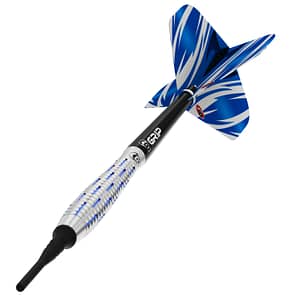 Der Ballista ist der feine Einsteigerdart für jeden ambitionierten Dartspieler. Die moderne Optik des Darts wird vor allem durch den transparenten Schaft mit Luftblaseneinschlüssen unterstrichen. Der Barrel, als wichtigster Faktor des Darts ist in edlem Silber gehalten. Auf dem Barrel wurde zusätzlich das BULL’S Logo eingraviert, sowie vier blaue Ringe, die an die Farben des Schafts sowie des Flights angepasst wurden. Der ausgeprägte Grip des Barrels erhöht die Stabilität des Wurfes. Der Dart wurde so ausbalanciert, dass der Schwerpunkt des Darts in der Mitte des Barrels liegt. Der Poly Schaft inkl. Aluminium-Ring wiegt 1,2g und misst eine Länge von exakt 48mm. Komplettiert wird der Ballista mit einem blauen metrixx Flight in der Standard A-Shape Form. Diese Flight-Form bietet eine extra Große Fläche von 47,033 qcm. Die Dicke des Flights beträgt 150 Micron, wodurch sich ein Flightgewicht von 0,7g ergibt. Den Ballista gibt es als Softdart in der18g Variante. Die Steeldartversion ist in den Gewichten 21g, 23g und 25g erhältlich.