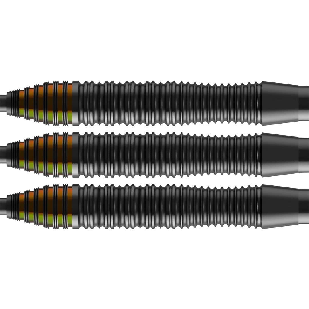 Diese gemeinsam mit Jani Keskinarkaus entwickelten Darts vereinen Funktionalität und Ästhetik. Das Design besticht durch einen schwarzen Schaft mit orangefarbener Front für einen markanten Look. Das Ringgriff-Design mit gewellter Rückseite und Mikrogriff an der Vorderseite bietet vielfältige Griffmöglichkeiten. Diese Vielseitigkeit macht die Darts für verschiedene Wurfstile geeignet.