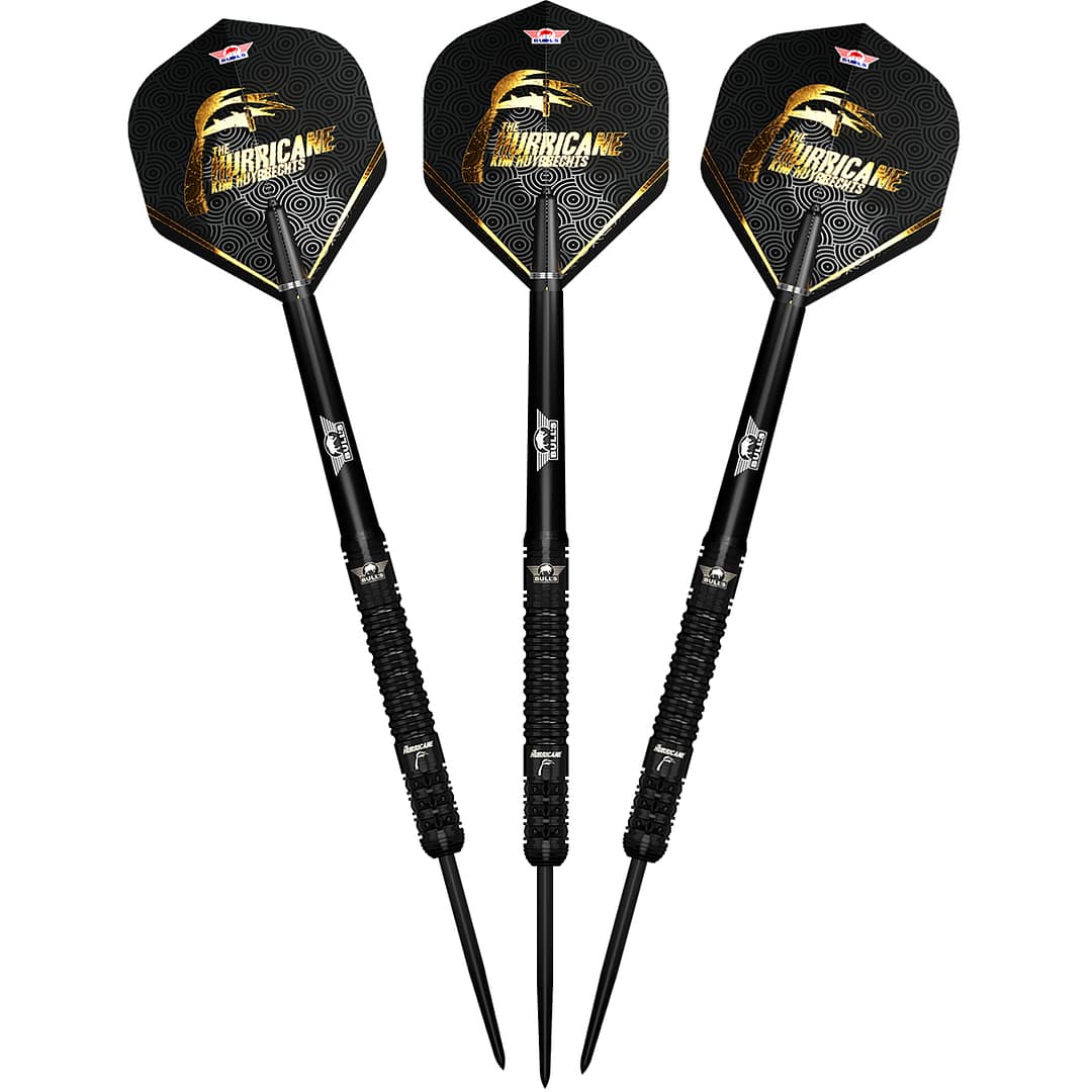 Die Bull’s Kim Huybrechts E2 Full Black Steeltip Darts vereinen ein unauffälliges Design mit hoher Funktionalität und spiegeln den scharfen und aggressiven Spielstil des belgischen Ausnahmespielers „The Hurricane“ wider. Gefertigt aus 90 % Wolfram und vollständig mattschwarz beschichtet, bietet dieser Dart ein schnörkelloses Design für fokussierte und präzise Performance.