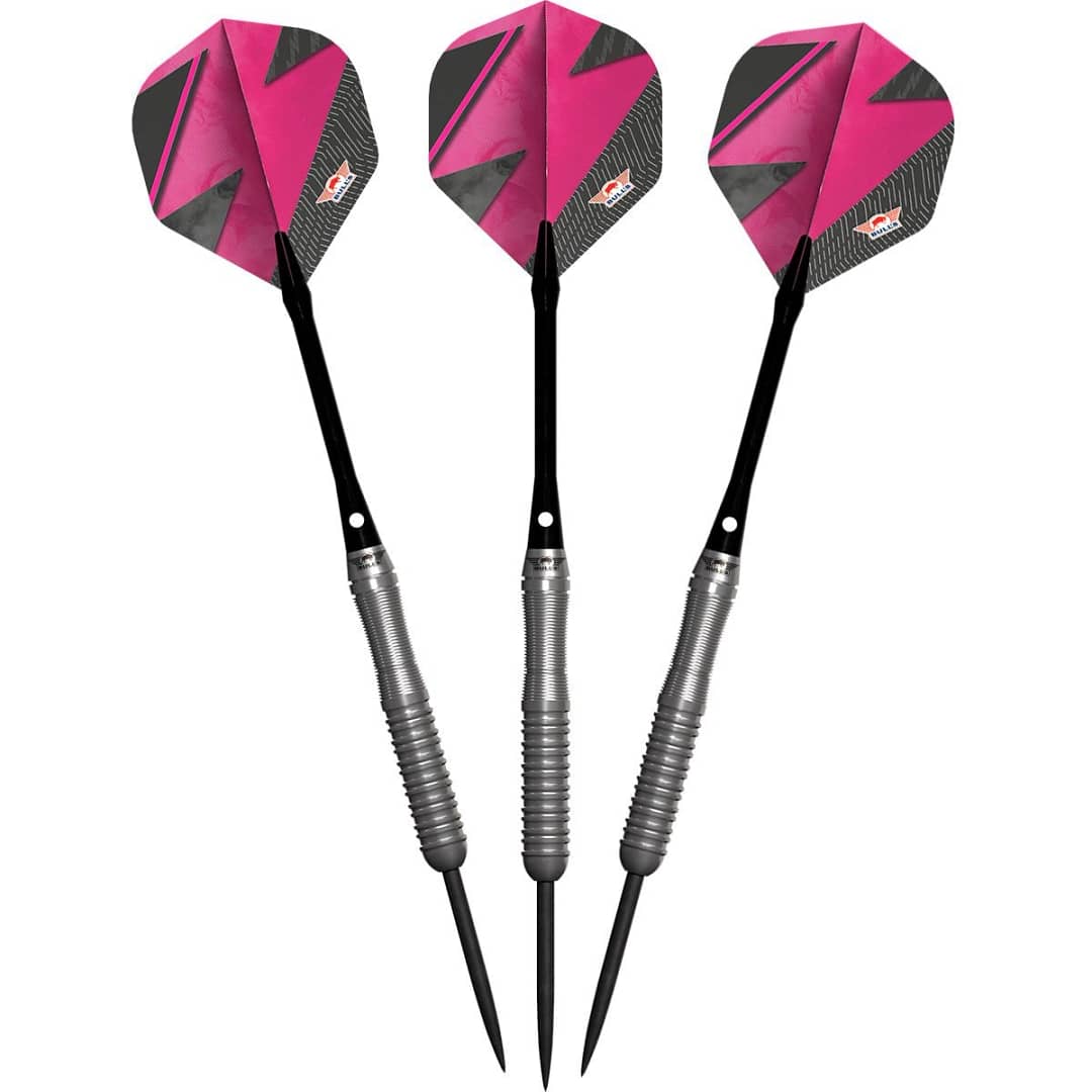 Die Bull’s Lightning 80% Pink Darts zeichnen sich durch die beliebte gerade Barrelform mit einer Kurve am hinteren Ende aus und bieten maximale Kontrolle und ein gleichmäßiges Spielgefühl. Der Ringgriff und die geschwungene Rückseite als Referenzpunkt ermöglichen Spielern einen gleichmäßigen Griff und präzisere Würfe. Erhältlich in den Gewichten 22, 24 und 26 Gramm, eignen sich diese Darts für eine Vielzahl von Wurfstilen und Vorlieben.