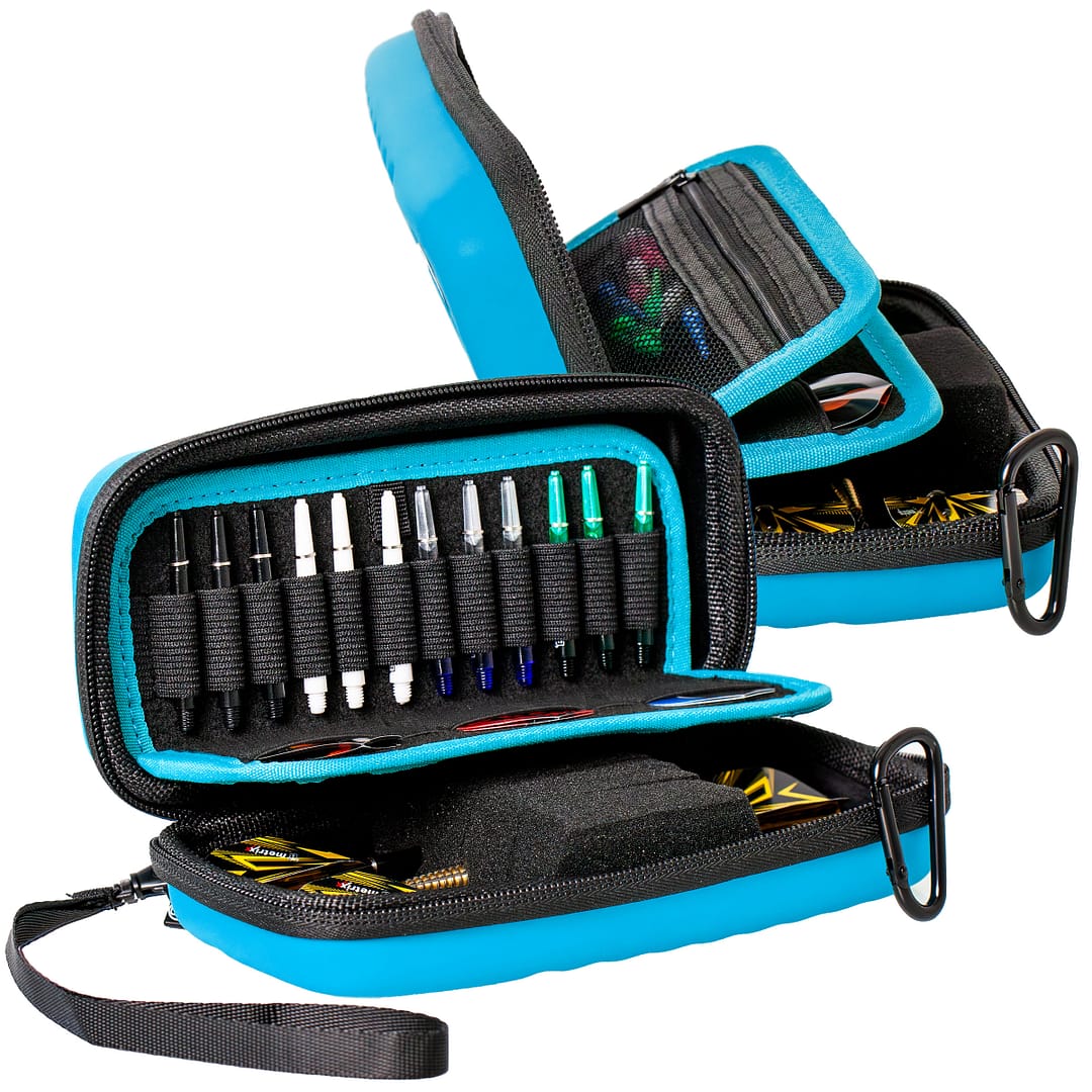 Punkten kann das Orbis zudem dank der Handlichkeit und der Raumaufteilung. Die Flights können auf dem Dart stecken bleiben ohne zu verknicken. Der Reißverschluss des Orbis ist verdeckt und leichtläufig. Das Orbis S wurde in den Farben schwarz, blau, mint, rot sowie in einer speziellen Mensur Suljovic Edition designed. Im Lieferumfang enthalten sind zusätzlich ein Karabinerhaken sowie eine Handschlaufe, die am Case befestigt werden können. Maße: 190 x 80 x 50 mm. Für diejenigen, die etwas mehr Platz benötigen, wurde das Dartcase in der Version Orbis XL entwickelt, in der zwei komplette Dart Sets Platz finden.