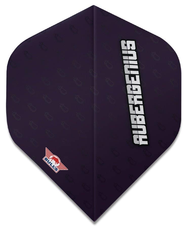 Der starke Bull’s Player 100 Flight. Dieser Dartflight wurde für den Bull’s Spieler Dirk van Duijvenbode, auch bekannt als Aubergenius, entworfen. Der Flight ist mit vielen kleinen Auberginen bedruckt. Er besteht aus 100 Mikron starkem Material und hat die Standardform Nr. 2.