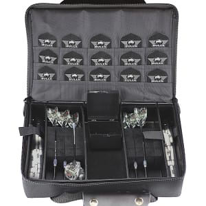 Dieses Material ist besonders robust und schützt so Ihre komplette Dartausrüstung vor Schäden. Das Bull’s Pro Player Case  ist formschön stabil und handlich. Die BULL´S NL Pro Player Darttasche besitzt einen umlaufenden Reißverschluss. Wird diese Darttasche geöffnet, lässt sich diese komplett aufklappen.
