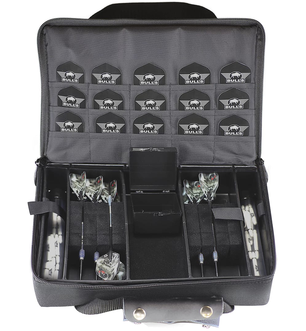 Das Bull’s Ubertas Case Nylon wurde speziell für anspruchsvolle Dart-Enthusiasten entwickelt und bietet Platz für nicht nur ein, sondern gleich zwei Dart-Sets und bringt so Ordnung in Ihr Dart-Set. Das durchdachte Design geht über Darts hinaus und bietet spezielle Fächer für Flights, Schäfte und eine Vielzahl an wichtigem Dart-Zubehör, das Ihren individuellen Spielvorlieben entspricht.