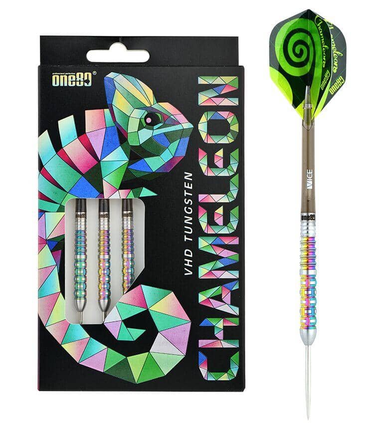 Alle Modelle der Chameleon Serie wurden mit einem mehrfarbigen Rainbow Coating beschichtet und aus 90%igen Tungsten gefertigt. Neben dem Aussehen ist auch jedes der verschiedenen Gripmuster außergewöhnlich gestaltet.