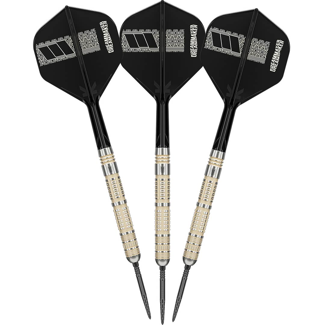 K-Flex mit integriertem Flight und Schaft vervollständigen das Dartpfeil-Set. Diese sind aus einem Stück gefertigt und bieten maximale Stabilität und Langlebigkeit. Dank des K-Flex-Systems können die Flights nicht mehr abfallen, was für eine bessere Aerodynamik und einen festen 90-Grad-Winkel der Flights sorgt. Mit ihrer tiefschwarzen Farbe und Dimitris unverkennbarem „DreamMaker“-Logo verkörpern diese Flights Performance und Individualität.