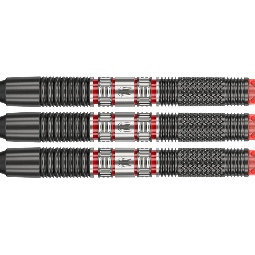 Ausgestattet mit einem 95% hochdichten Tungsten Barrel, der außergewöhnliche Haltbarkeit und ein schlankes Profil für überlegene Kontrolle bietet. Die Gabriel Clemens 95K Soft Tip Barrel sind mit radialen Rillen und Fräsungen versehen, die durch eine schwarze PVD-Beschichtung für Stil und Widerstandsfähigkeit ergänzt werden. Markante rote Akzente auf dem gesamten Lauf sorgen für ein auffälliges visuelles Element und Spot-UV-Beschichtungen für ein hochwertiges, poliertes Aussehen.
