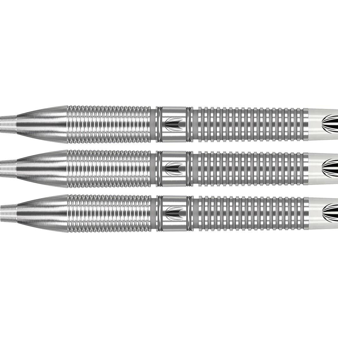 Der Barrel ist konisch geschnitten und kombiniert radiale Rillen auf der Rückseite mit der Nano-Grip-Technologie auf der Vorderseite, was ihm einen einzigartigen Griff und ein einzigartiges Gefühl verleiht. Der Barrel ist zusätzlich mit der bahnbrechenden Storm Nano Point von Target ausgestattet, einer einzigartigen, vollständig maschinell gefertigten Spitze, die reduzierte Flugablenkungen und den ultimativen Fingergrip bietet.