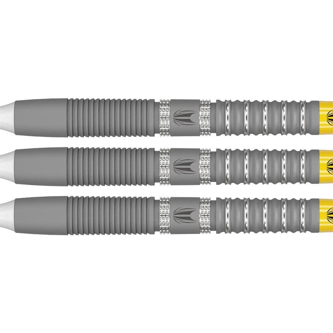 Geformt nach Clemens‘ exakten Anforderungen und mit mehreren Griffprofilen, darunter radiale Rillen auf der Vorderseite und eine doppelte radiale Griffzone auf der Rückseite, um dem Spielstil des „German Giant“ gerecht zu werden. Der Gabriel Clemens G2 Softdart Barrel ist vollständig von Hand sandgestrahlt und bietet ein griffigeres Gefühl, bevor die Mitte und die Rückseite nachbearbeitet werden, um das natürliche tungsten hervorzuheben.
