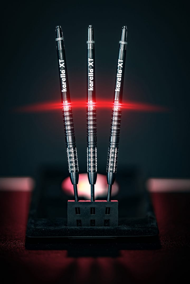 Mehr Dart geht nicht. In einem aufwändigen, mehrstufigen Verfahren wird der zylinderförmige Barrel aus 90% Tungsten gefertigt und durch eine schwarze PVD Beschichtung veredelt. Der Barrel hat drei unterschiedliche Gripzonen und bietet einen super Grip. Die zusätzliche Längsfräsung im vorderen Bereich unterstreicht das besondere Design des Darts und ermöglicht dem Spieler eine optimale Orientierung für die Finger. Passend zur schwarzen Farbe des Barrels sind auch die Softspitzen schwarz. Ein Blickfang sind die beiden charakteristischen roten Karella Stripes am Ende des Barrels. Komplettiert wird der Dart durch die extra entwickelten Karella XT Shafts sowie hochwertige und optisch ansprechende Karella Profi Flights. Der Softdart ist in den Gewichten 18 gr. und 20 gr. erhältlich.