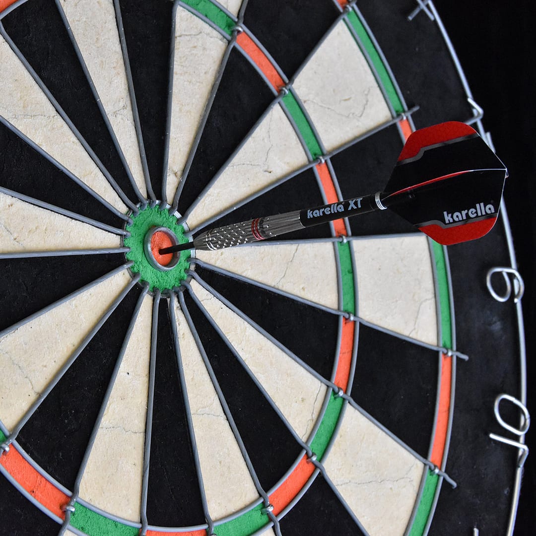 Achtung! Dart ist ein Sport für Erwachsene und kein Spielzeug. Für Kinder ist es gefährlich und darf nur unter Aufsicht gespielt werden. Außerhalb der Reichweite von kleinen Kindern lagern, Kleinteile stellen eine Erstickungsgefahr dar. Werfen Sie die Darts nur auf die dafür vorgesehene Dartscheibe und achten Sie darauf, dass sich keine Personen im Wurfbereich aufhalten.