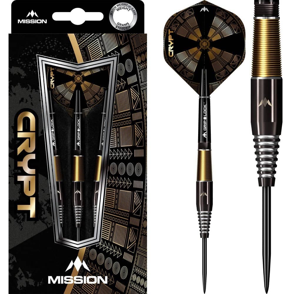 Mission Crypt Darts – Stahlspitze – M2 – Schwarz & Gold.