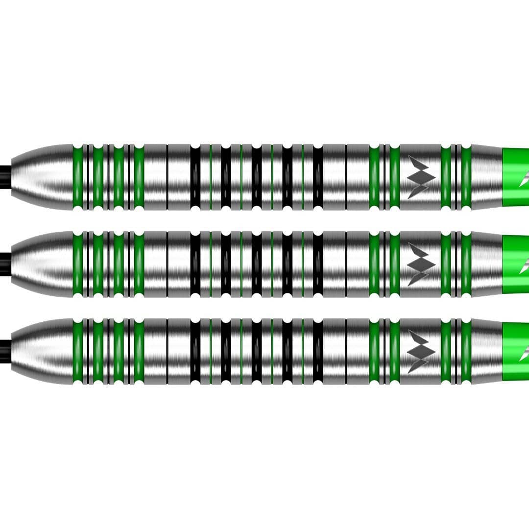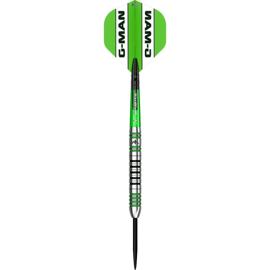 Die Graham Hall Spielerpfeile zeichnen sich durch ein gerades 90% Tungsten Barrel-Design und eine Bullnose mit schwarz und grün hervorgehobenen radialen Rillen aus, die die Optik der Pfeile noch attraktiver machen. Die Graham Hall werden mit Sabre-Schäften und 100-Mikron-Flights geliefert.