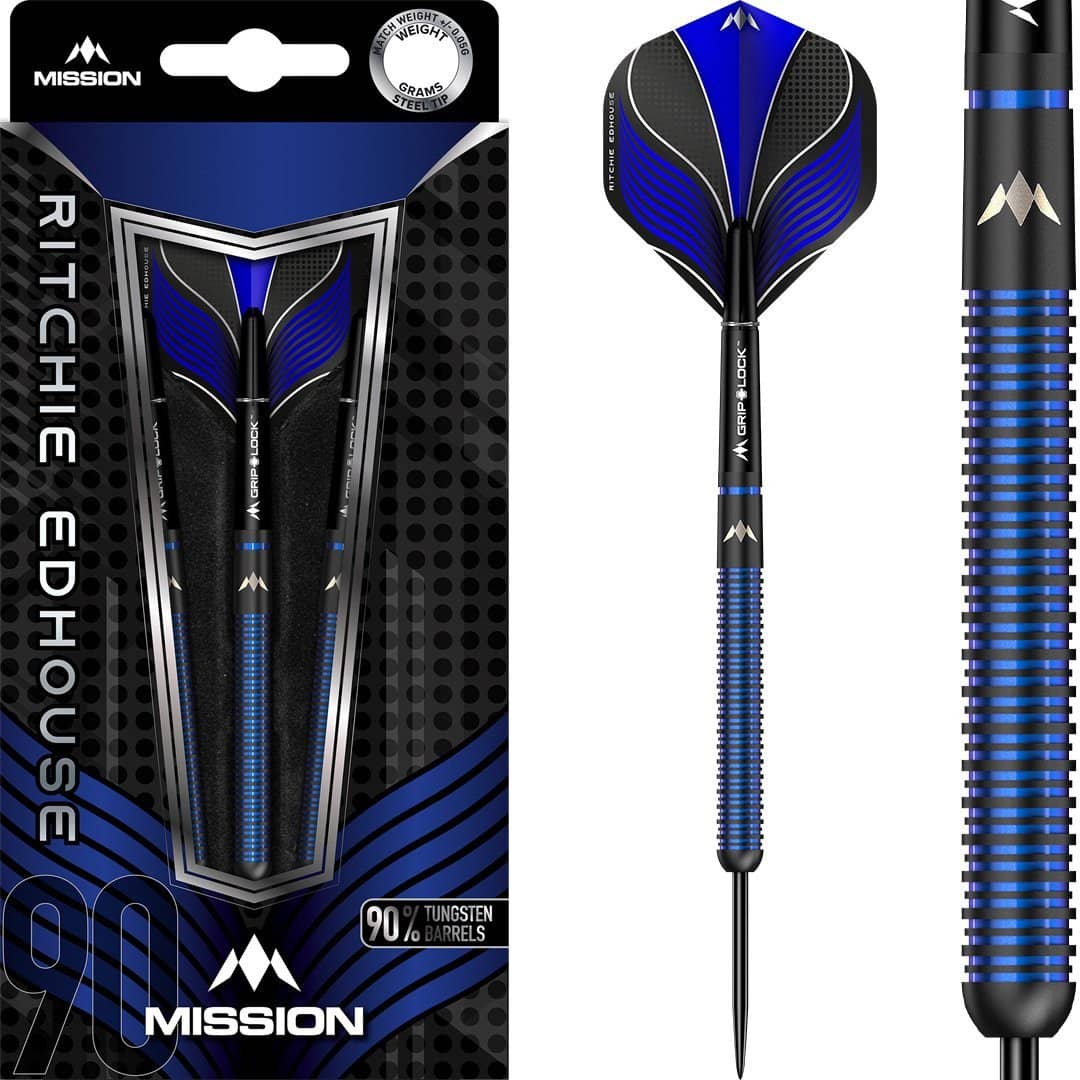 Diese Mission Ritchie Edhouse Black Darts aus schwarzem Titan bestehen zu 90 % aus Wolfram, sind mit schwarzem Titan beschichtet und anschließend mit der charakteristischen Farbe der Spieler, Blau, verziert!