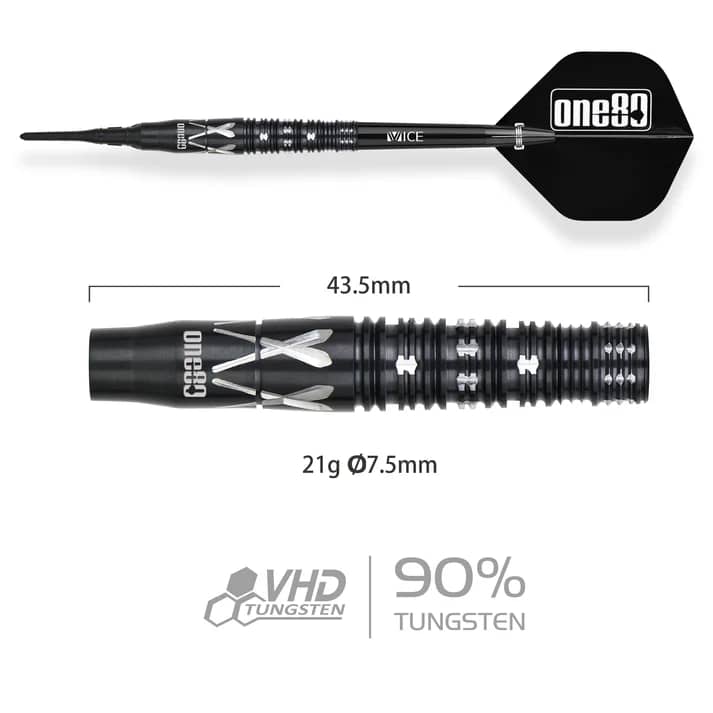 Der One80 Noriyuki Nakamura Softdart ist die perfekte Wahl für ambitionierte Dartspieler, die Wert auf Qualität, Stil und Präzision legen. Dieses Premium-Dartset überzeugt durch seine hochwertige Verarbeitung, moderne Optik und die sorgfältig ausgewählten Materialien. Mit einer beeindruckenden schwarzen Beschichtung, silbernen Highlights und dem eingravierten One80-Logo vereint der Noriyuki Nakamura Funktionalität mit ästhetischer Eleganz.