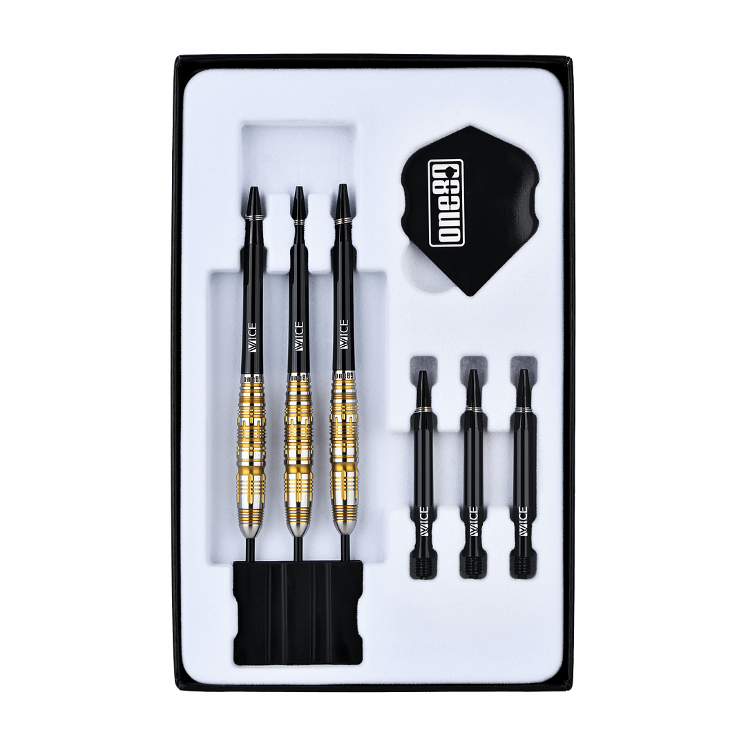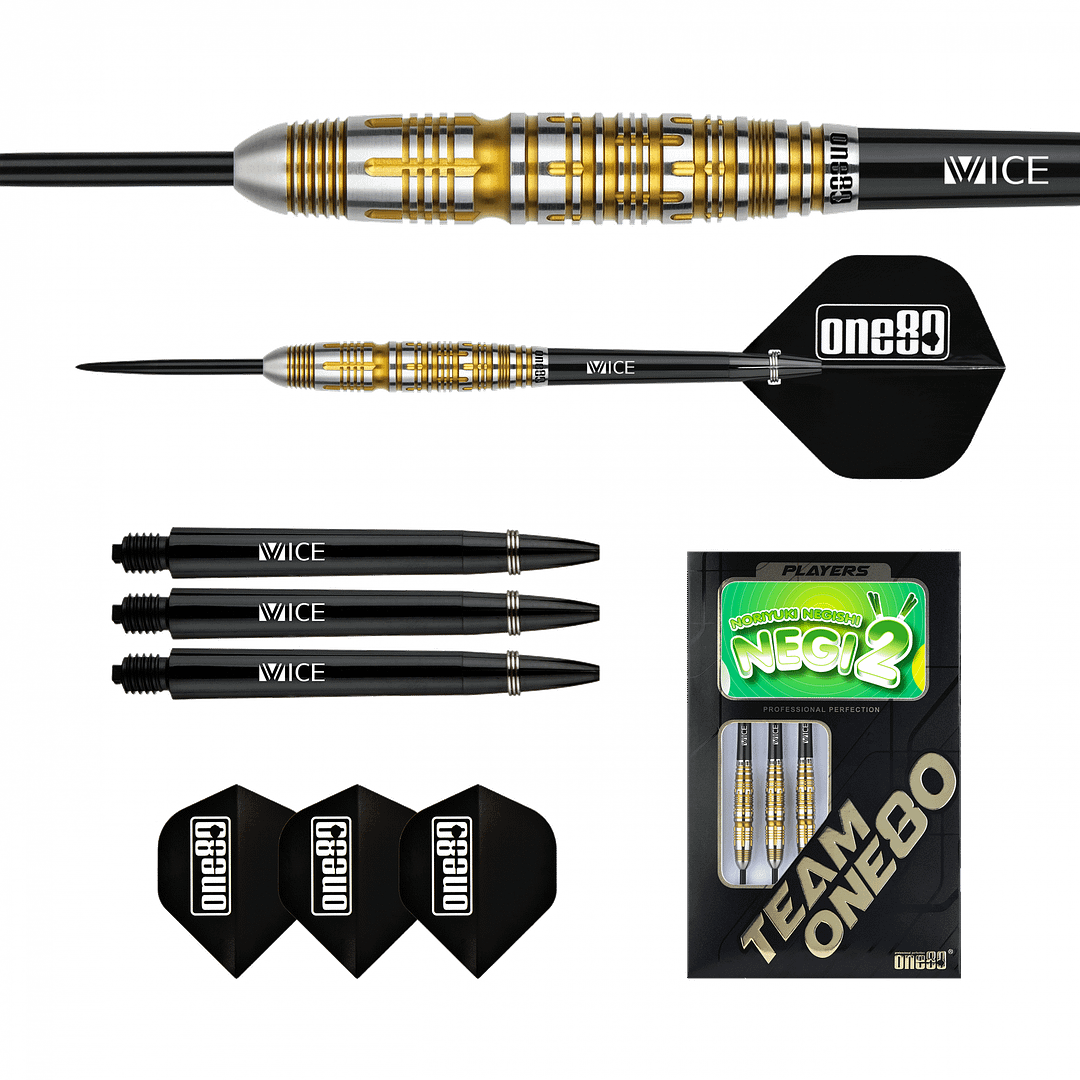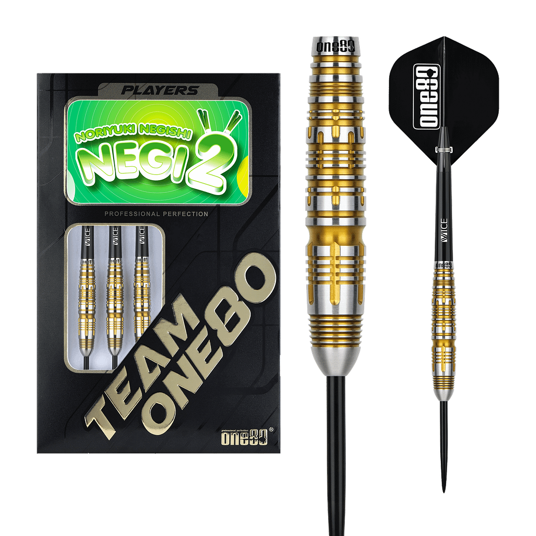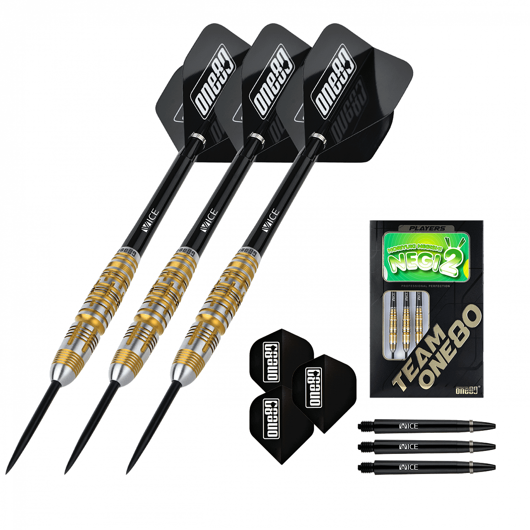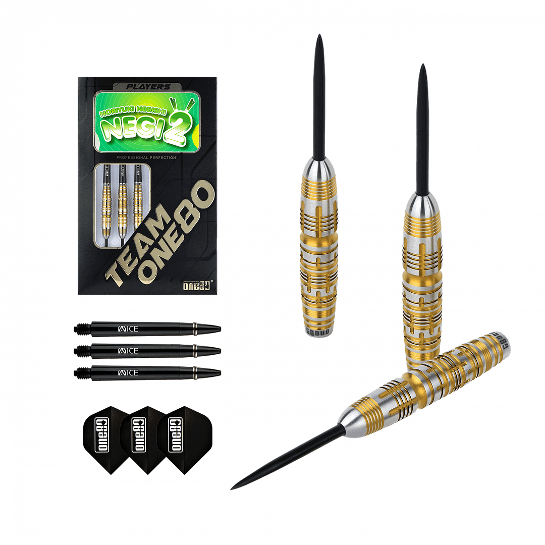 Das Noriyuki Negeshi V2 Dart Set besteht aus 1 Satz von 3 Barrels mit Stahlspitze. Die Barrels sind aus 90% feinstem Tungsten gearbeitet.