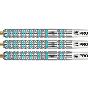 Das Dart-Set enthält 3 komplett montierte Darts, bestehend aus 3x 80% Tungsten Barrels, 3x 30mm Steeldarts-Spitzen, 3x Pro Grip Shafts (kurz, 34mm), 3x Pro Ultra No.6 Flights, und 1x Bar Dartwallet.