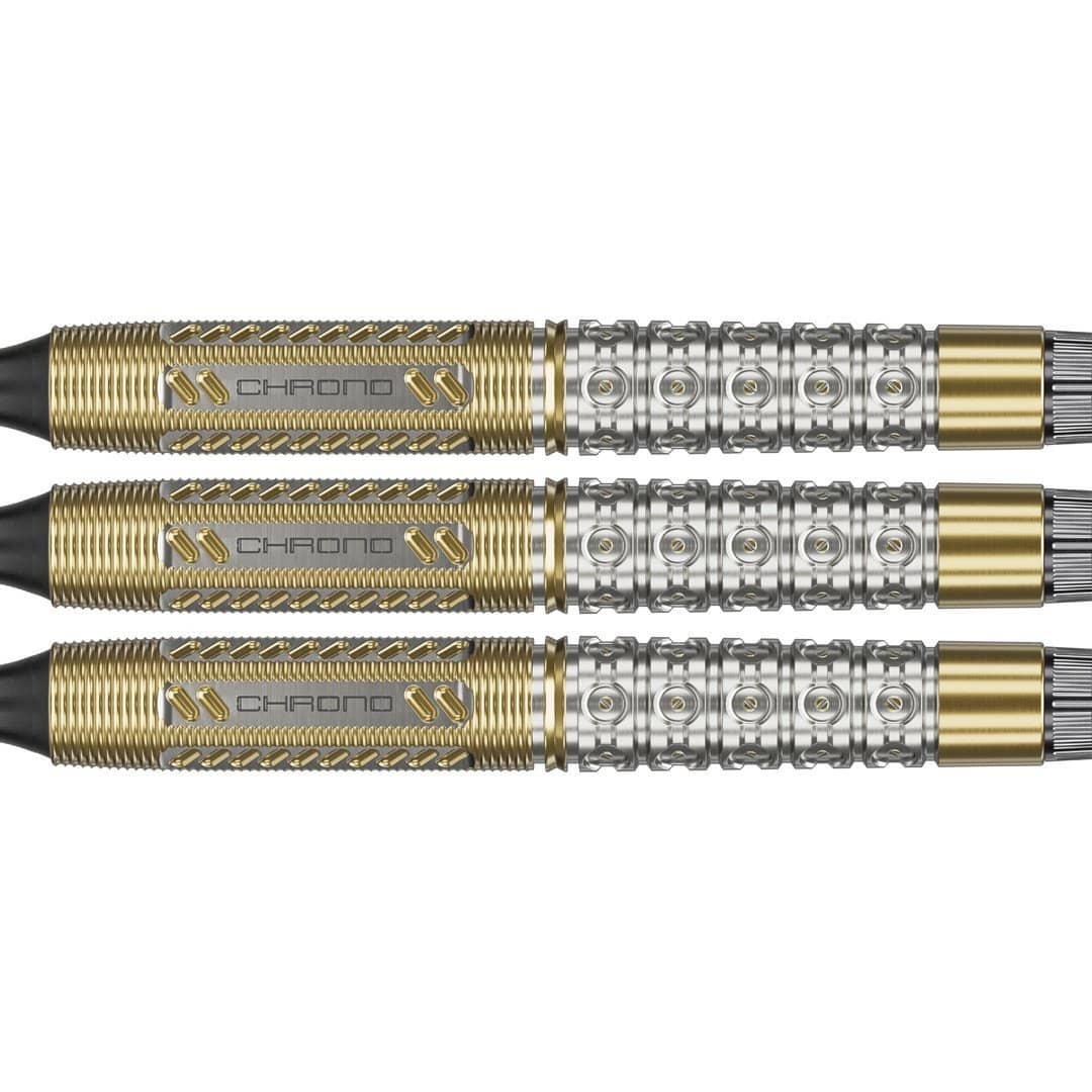 Die Raymond van Barneveld Chrono Softdarts sind ein Synonym für Luxus und Präzision, inspiriert von der Raffinesse und Eleganz hochwertiger Uhren. Entwickelt in Zusammenarbeit mit dem fünfmaligen Weltmeister „Barney“, zeichnen sich diese Darts durch eine minimalistische, aber markante Ästhetik aus, die durch eine luxuriöse PVD-Titannitrid-Beschichtung auf dem hochdichten 95% Tungsten-Barrel hervorgehoben wird.