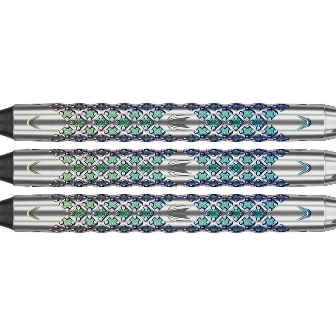 Die Rove 10 Soft Tip 90% Tungsten gerade Barrels verfügen über eine Präzisionsfräsung und sind mit einem markanten grünen diamantähnlichen Carbon-Finish beschichtet. Die detaillierten Texturen und Designelemente sind so integriert, dass sie eine hervorragende Griffigkeit und Kontrolle bieten. Der gerade Barrel bietet eine konsistente Griffigkeit über die gesamte Länge des Barrels, sorgt für ein ausgewogenes Gefühl und passt sich verschiedenen Griffstilen an.