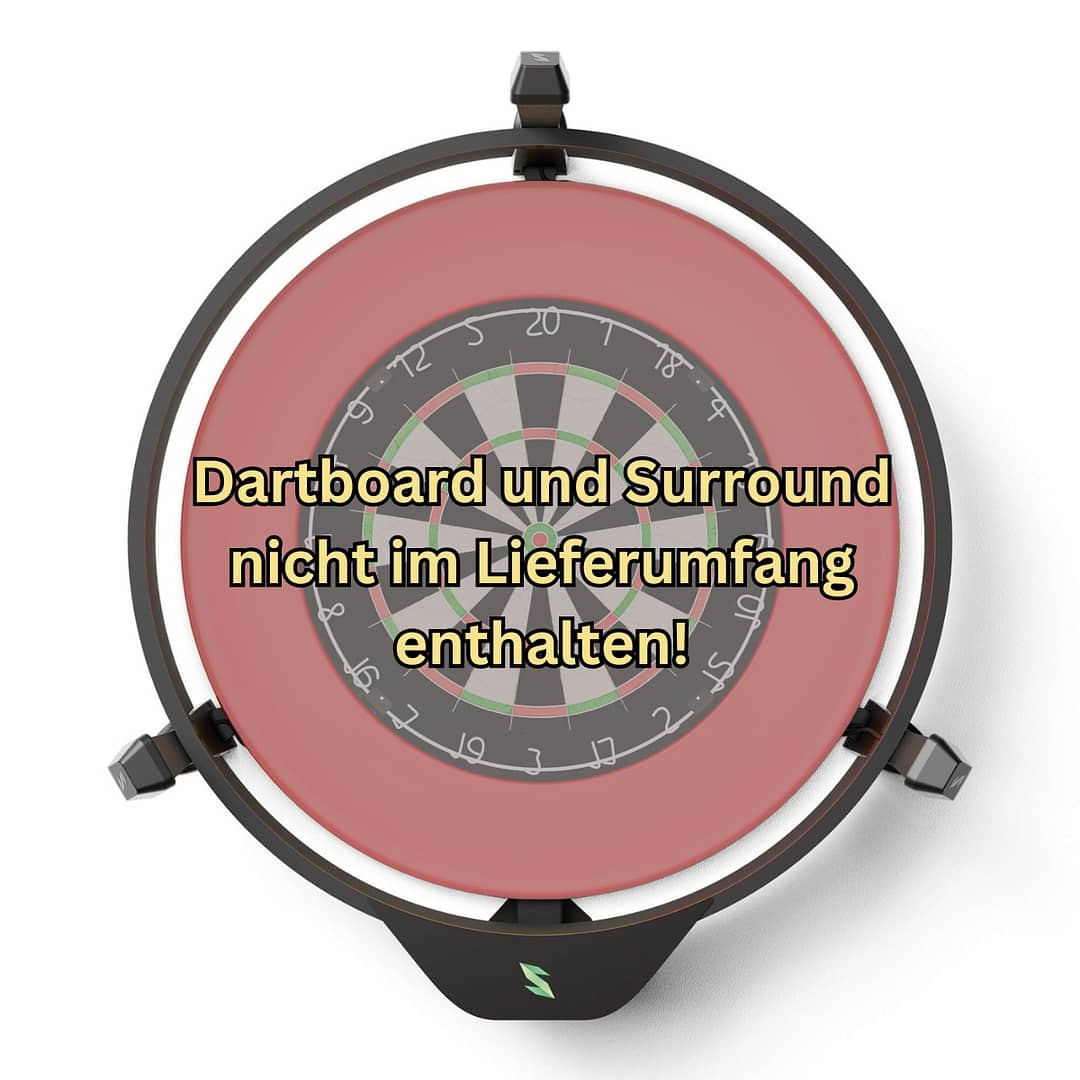 Dieses Paket enthält das notwendige Beleuchtungssystem, das optimale Sicht gewährleistet und Ihr Spielerlebnis verbessert. Dartscheibe und Surround sind nicht im Lieferumfang enthalten. Jede Standard-Dartscheibe mit großen Zahlen ist jedoch kompatibel (mit Ausnahme von Scheiben wie der Target Aspar).