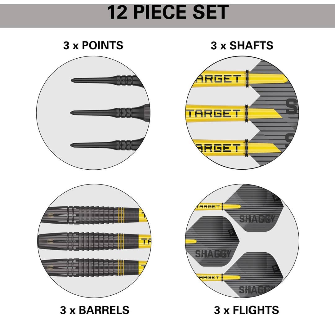 Wir stellen das Scott Williams Black Softdart Set vor, ein Dart-Set für Spieler, das in Zusammenarbeit mit Scott Williams, auch bekannt als „Shaggy“, entwickelt wurde. Die 90% Tungsten Barrel ist sorgfältig für die perfekte Balance zwischen Gewicht und Schlankheit gefertigt, die Verbesserung der Genauigkeit und Dart Kontrolle.