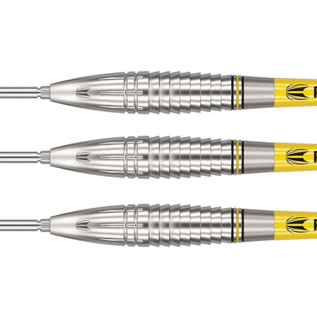 Die Scott Williams G1 SP, die gemeinsam mit „Shaggy“ nach seinen genauen Anforderungen und Spezifikationen für das Dartspiel entwickelt wurden. Der torpedoförmige Scott Williams G1 SP Barrel besteht aus 90% Tungsten und ist mit einer Kombination aus radialen Rillen, Nanoringen und CNC-Fräsungen im gesamten Barrel versehen, um den Grip für die Finger zu verbessern.