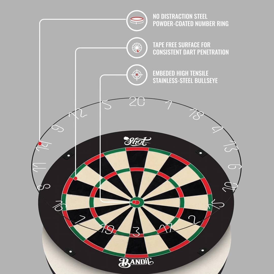 Professionelle Dartscheibe von Shot Bandit. Hergestellt aus Sisal höchster Qualität mit lichtechter Tinte.