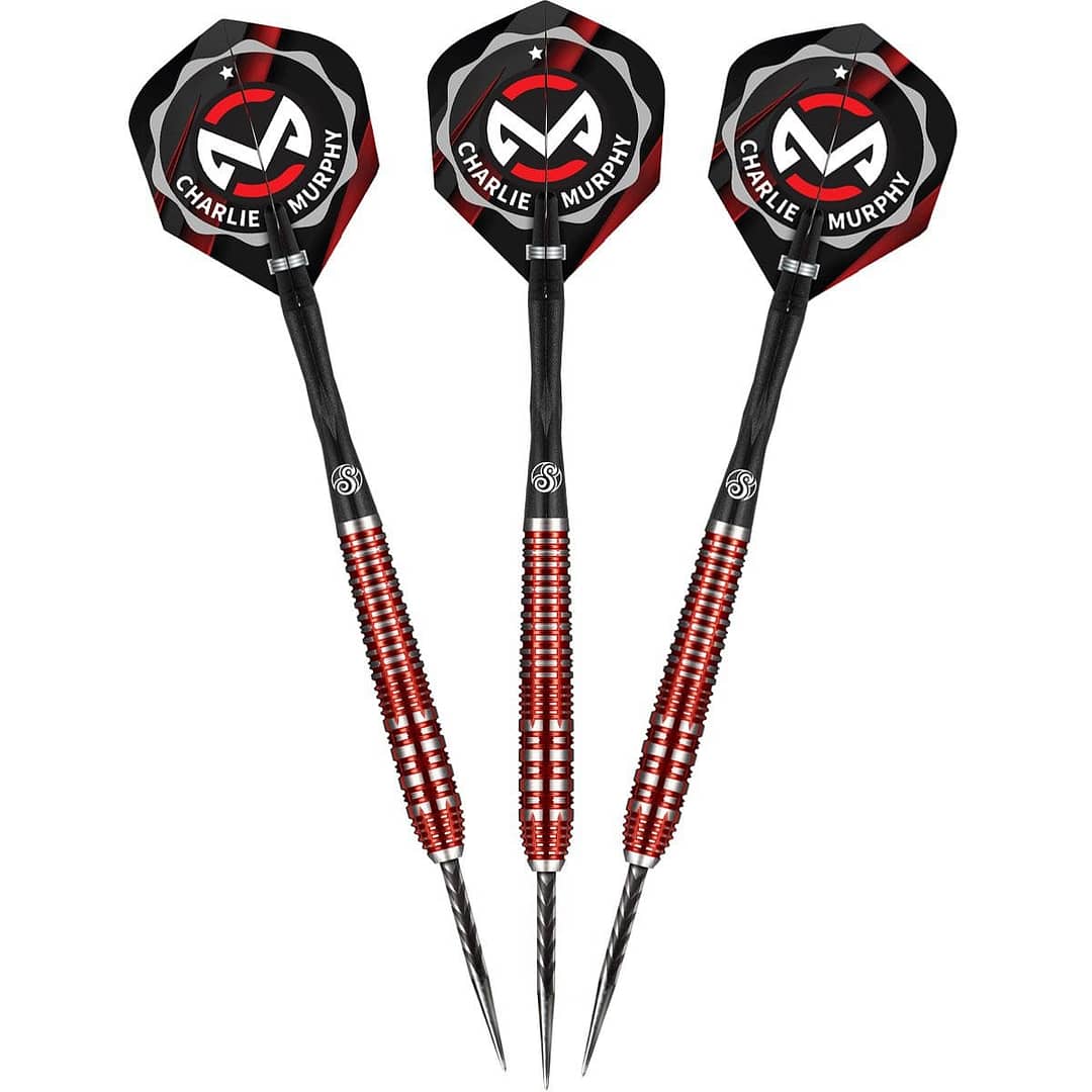 Dieses Design des Shot Charlie Murphy zeichnet sich durch eine axial geschnittene Spitze aus, die eine zuverlässige Fingerreferenz bietet, und eine sanfte Verjüngung, um Ablenkungen zu reduzieren – so gleiten nachfolgende Darts sauber vorbei. Direkt hinter der Spitze befindet sich ein klar definierter Referenzpunkt für Ihre Finger, der Ihnen hilft, den Dart zuverlässig zu fixieren.