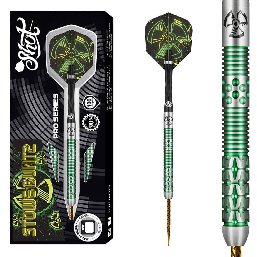Das Design der Shot Pro Series Stowe Buntz 2.0 ist jetzt für mehr Stabilität mit einer Beschichtung aus schwarzem Titan versehen und wurde für den Neon Nightmare entwickelt. Es verfügt über den neuen Fusion-Griff, mit 90% Tungsten hinter der Spitze, der aus abwechselnden Fräsungen besteht, die gleichmäßige wellenartige Vertiefungen im Schaft erzeugen.
