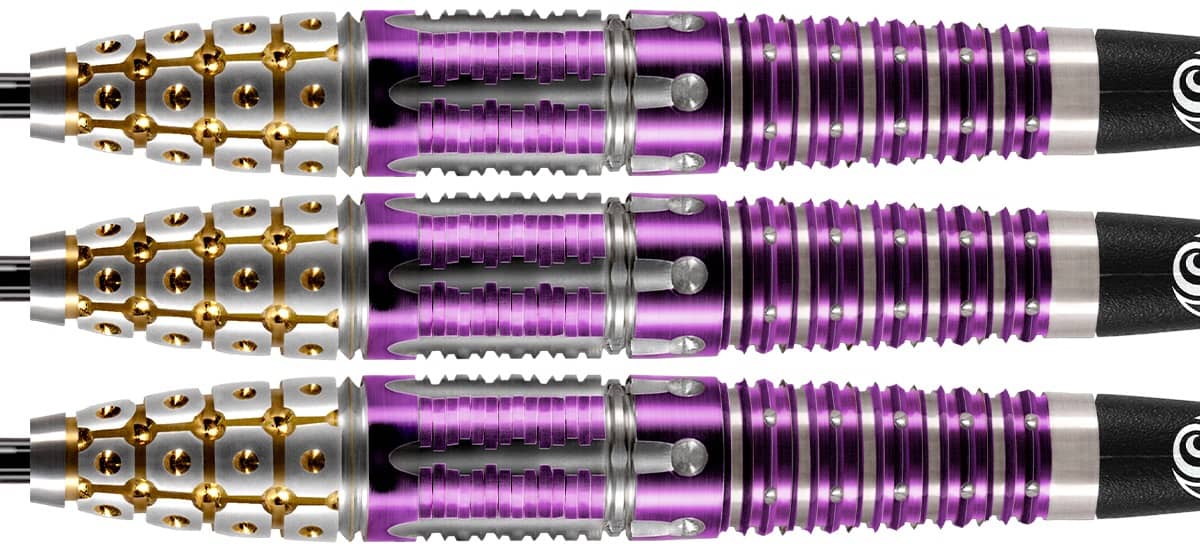 Das Shot Roman Empire Caesar Dartset verfügt über drei neue, unterschiedliche Griffprofile, die mehrstufige Fingerreferenzpunkte entlang des Darts ermöglichen. Die Spitze des Barrels ist mit dem defensiven Testudo-Griff versehen, benannt nach der Schildwall-Formation „Schildkröte“, die von Legionären zum Schutz vor feindlichen Bogenschützen verwendet wurde. Darauf folgt der Glaidus-Griff (Schwert), ein starker und dennoch superfeiner Griff mit gestapeltem Muster und tiefen axialen Einschnitten, der eine kraftvolle Positionierung und Kontrolle ermöglicht. Der Dart endet mit dem Hilt-Griff, einem multidirektionalen Shark-Griff, der für zusätzliche Traktion überarbeitet wurde und die Finger in einem rutschfesten Bereich fixiert. Die satte und majestätische violett-goldene Titanbeschichtung sorgt für Stärke und Schönheit und wurde zu 100 % in unserer Fabrik in Neuseeland entworfen, hergestellt und farbplattiert.