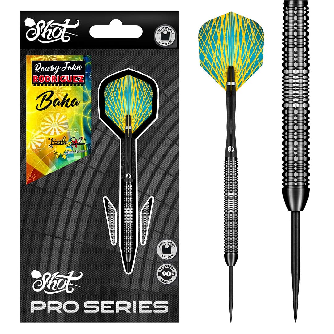Die Shot Rowby-John Rodriguez Baha 90% Darts sind ein exklusives Modell, das in Zusammenarbeit mit dem Profispieler Rowby-John Rodriguez entwickelt wurde. Hergestellt aus 90 % Wolfram für professionelle Haltbarkeit und ein schlankes Profil, bieten diese Darts verbesserte Kontrolle und ein präzises Wurfgefühl bei jedem Wurf.