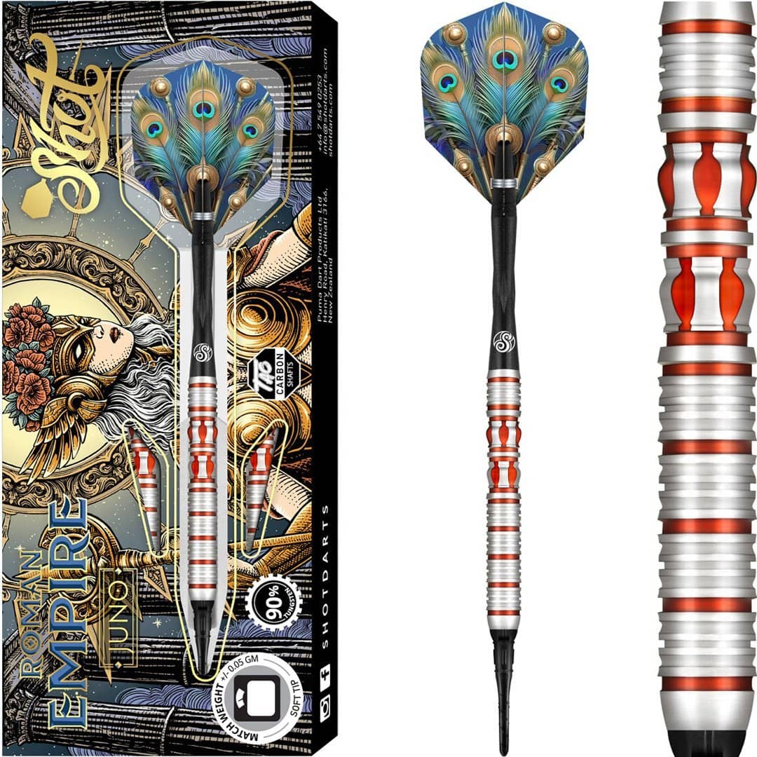 • Hochwertige Wolframkonstruktion: Diese Shot Softtip Roman Empire Juno Darts bestehen zu 90 % aus Wolfram und sind auf Langlebigkeit und lang anhaltende Leistung ausgelegt. Sie behalten ihre Präzision auch nach intensiver Nutzung.