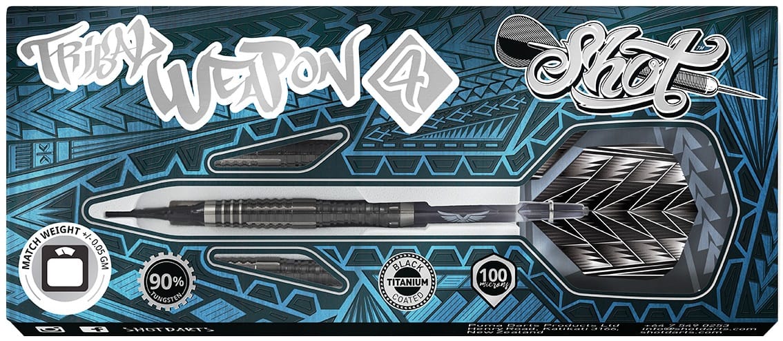 Schon immer schnell, jetzt noch tödlicher. Inspiriert von den alten Kampfkünsten des Pazifiks und Asiens, wird der Shot Softtip Tribal Weapon 4 aus feinstem 90% Wolfram geschmiedet, das durch unseren intensiven 7-stufigen Prozess geht, um seine präzise Oberfläche und einen Griff wie bei Ihrem Schwiegervater zu erhalten.