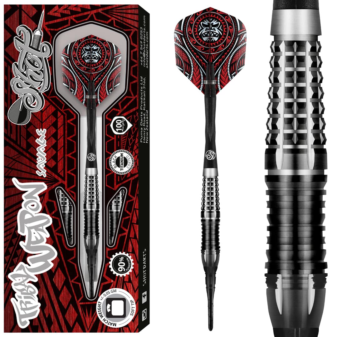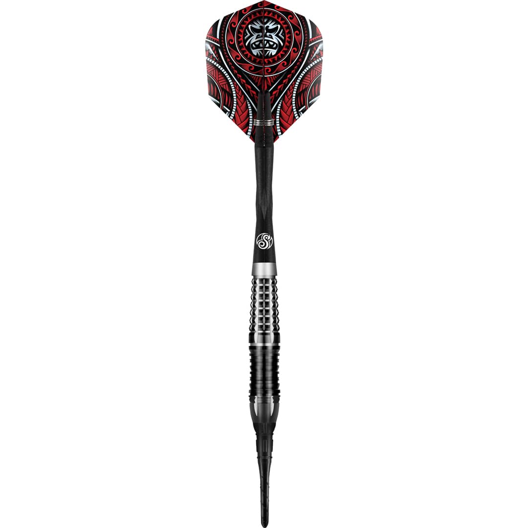 Entfesseln Sie Ihre ungezähmte Natur mit Shot Softtip Tribal Weapon Savage, inspiriert von den alten Kampfkünsten des Pazifiks und Asiens. Ein robuster, gewellter Bomber-Stil fixiert die Finger für müheloses Werfen, während tiefe Einschnitte einen rückenartigen Griff definieren, der sich durch das gesamte Schwert zieht.