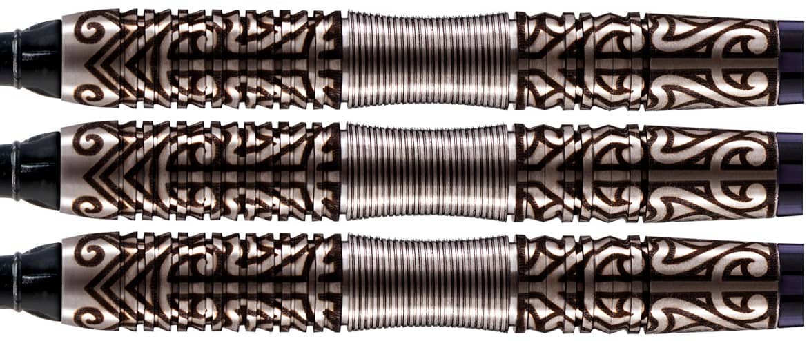 Darauf folgt ein präzise platziertes, gewelltes Band, das Ihnen einen perfekten Mittelgriff und pures Selbstvertrauen bietet. Der Shot Softtip Warrior Hautoa ist mit Cinder Grip™ im modernen Tribal-Tattoo-Design verziert, das für superfeine Traktion und Kontrolle im unverwechselbaren Shot Darts-Stil sorgt. Die Quelle Ihrer Stärke ist zugleich die Herausforderung, Ihr Bestes zu geben.
