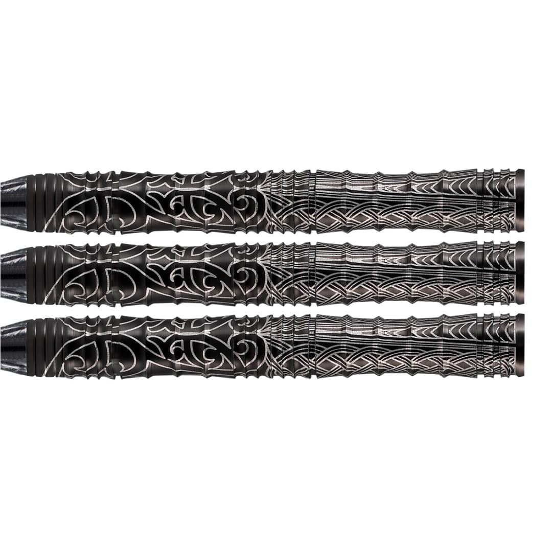 Geschmiedet durch harten Wettbewerb und kampferprobte Technik, die seit 1970 verfeinert wurde, tritt Warrior Kapene an, um unsere globale Truppe in die nächsten 50 Jahre zu führen. Mit seiner geraden Form und dem Schwerpunkt im Zentrum besticht der Shot Softtip Warrior Kapene durch einen großzügigen Haifischgriff entlang des Barrels. Hintere und vordere Ausbuchtungen verleihen diesem 90% Wolfram-Dartset zwei positive Wurfbereiche – für einen starken Schub und einen sicheren Bezugspunkt. Gepanzert mit hochfeinem Titan und einer lasergravierten Ta Moko-Hülse (Tribal Tattoo), die sich im Flug widerspiegelt.