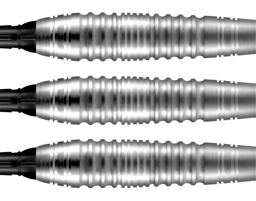 Die Spitze des bombenförmigen Budo verfügt über vier quadratische Rillen für Fingerreferenz und einen kontrollierten Abwurf. Ein klassischer, breiter Ringgriff sitzt entlang des Barrels und ist an der Rückseite mit den gleichen quadratischen Rillen versehen. Der Abstoßpunkt liegt leicht vor der Mitte. Durch die zentrale Gewichtsverteilung kann sich der wendige kleine Budo selbst korrigieren und die Dartscheibe im rechten Winkel treffen. Da er konstant geworfen werden muss, ist er der perfekte Barrel für Einsteiger.