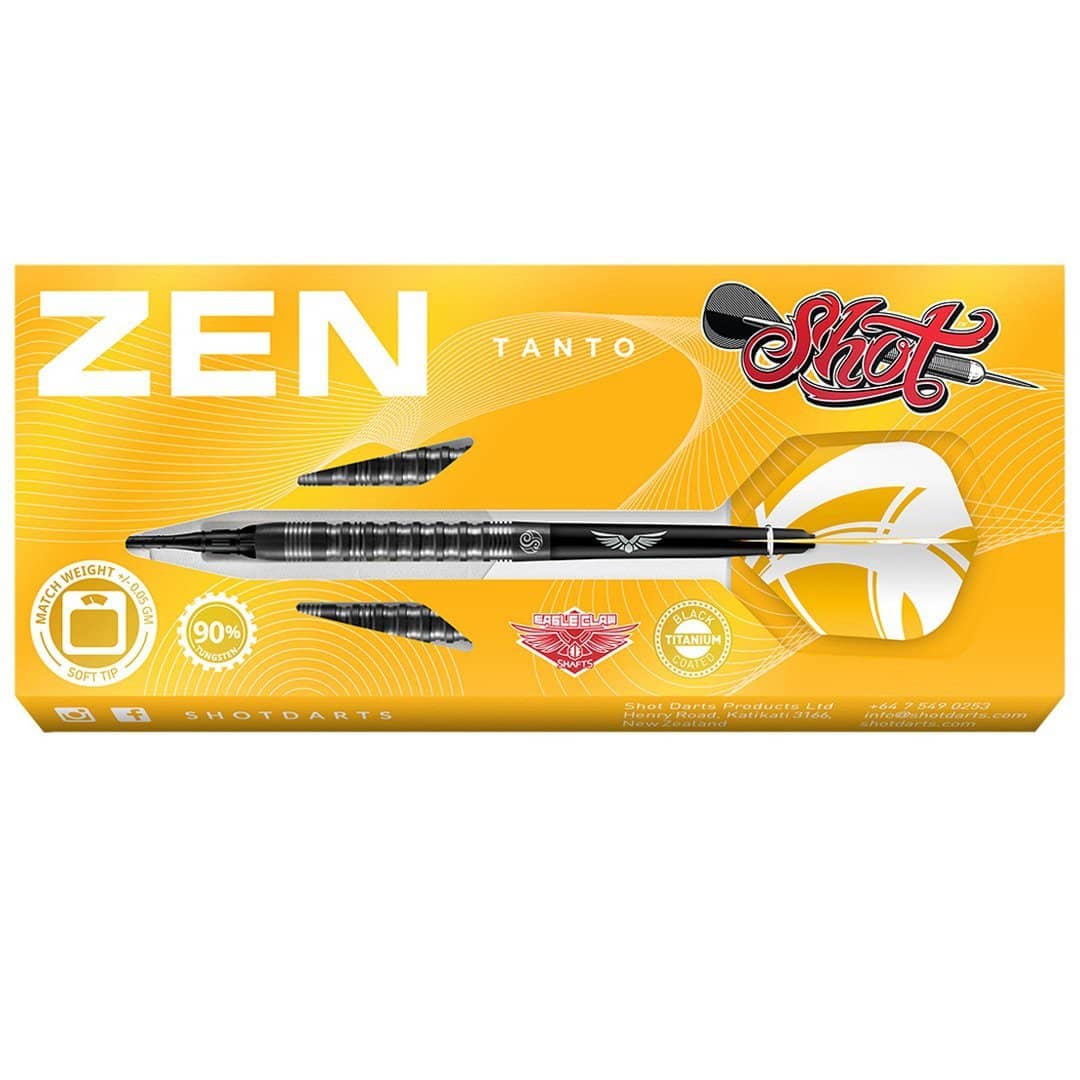 Der gerade Shot Softtip Zen Tanto Barrel wurde entwickelt, um Ihnen zu einem besseren Spiel zu verhelfen. Mit einem stabilen, neu entwickelten Pyramidengriff von der Spitze bis zum Ende, einer Ummantelung aus glattem schwarzem Titan und einem Mittelgewicht ist Tanto Ihr Kompass – er zeigt Ihnen den Weg.