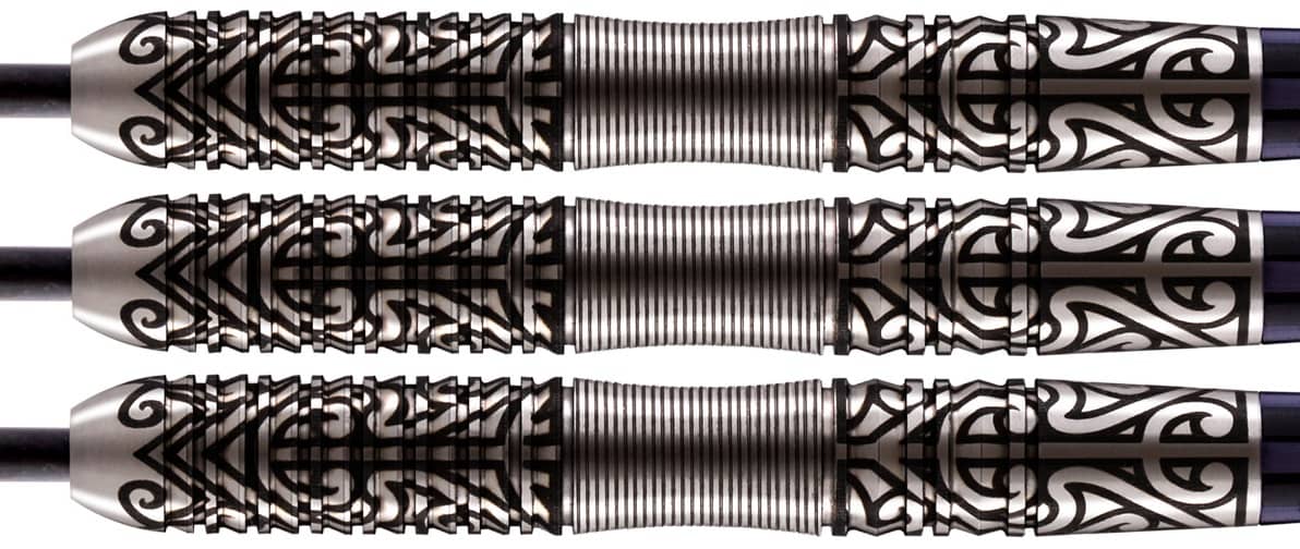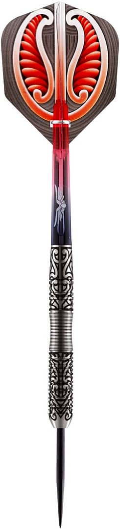 Wenn Mut die halbe Miete ist, ist Hautoa – mutig und wagemutig in Te Reo Māori – Ihre andere Hälfte. Inspiriert von seinem älteren Bruder, dem Shot Darts Warrior 3, hat dieser mittig gewichtete Shot Warrior Hautoa Barrel aus 80 % Wolfram eine schlanke Spitze mit einem Haifischflossengriff vorne.